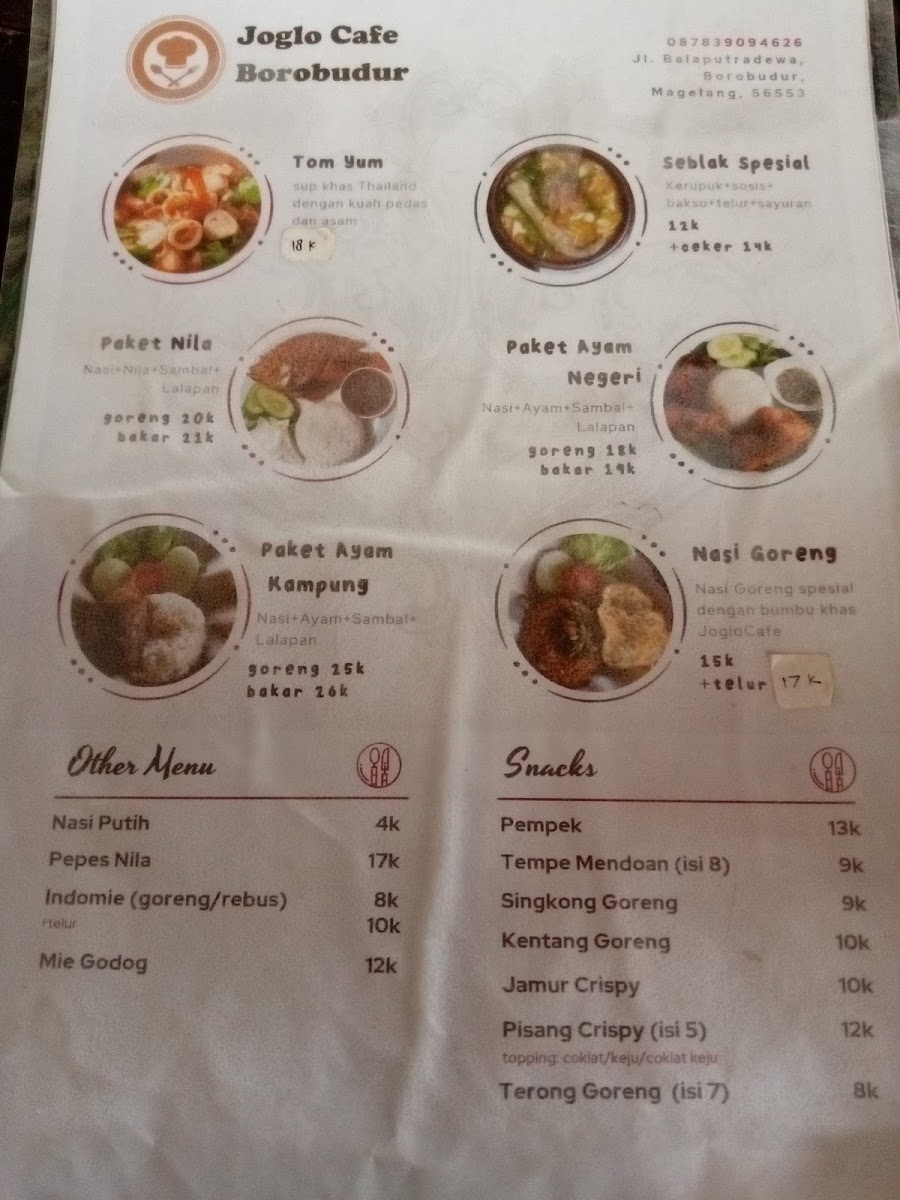 Although some dishes may have translation quirks, the charm of Joglo Cafe Borobudur lies in its authentic experience that beckons you to return and explore more of its Indonesian delights.